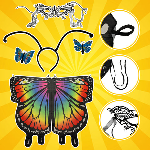 Børne kostume med sommerfuglevinger og tilbehør