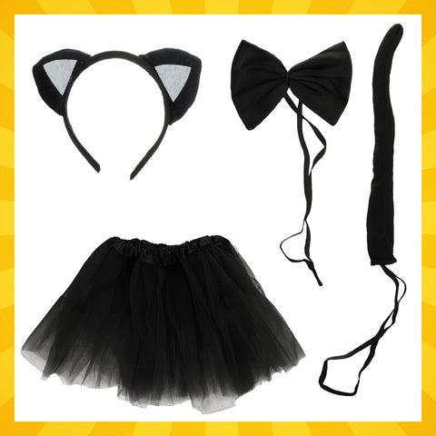 Sort kattekostume til børn - 4 dele i ét sæt