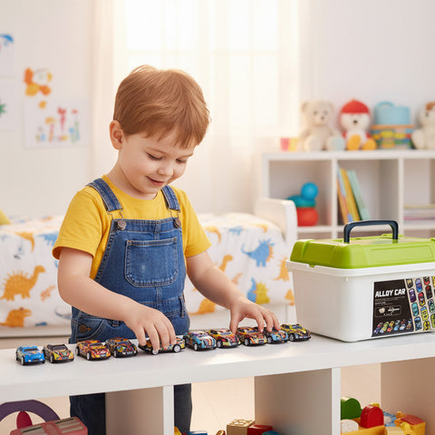 Motoriserede legetøjsbiler i kuffert - 50 stk.