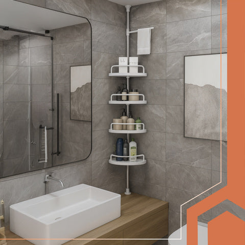 Praktisk hjørneshelf til badeværelset med justerbar højde