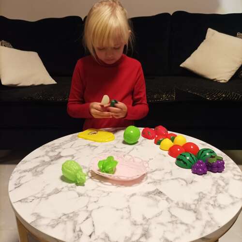 Farverig Legesæt med Frugter og Grøntsager – Skærebræt og Kniv Inkluderet