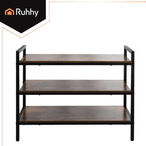 Sko rack 79 cm med 3 hylder i metal og træ